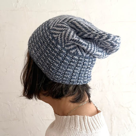 このヘリンボーン柄、以前にスヌードがありましたね、お揃いで編めるのいいね。