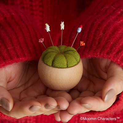 石川県金沢市で85年余の歴史を刻んできた縫製会社<hiro(ヒロ)>とのコラボレーションのまち針&針山だそうです。ガラス細工のキャラクターがめちゃめちゃかわいい。今、「森の散歩道」「ムーミン谷の春」「はじめての冬」の3種がでています。針山もかわいいんだけど、まち針だけで売ってくれないかなぁ。