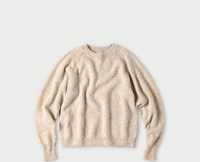 先日、「スティーク」という手法の話で、フェルティング(縮絨)できる糸が少なくなって入手しづらいという話を書きましたが、私の大好きなお洋服ブランド45Rから「シェットランド縮絨の908セーター」が発売されてて、タイムリー!とびっくり。